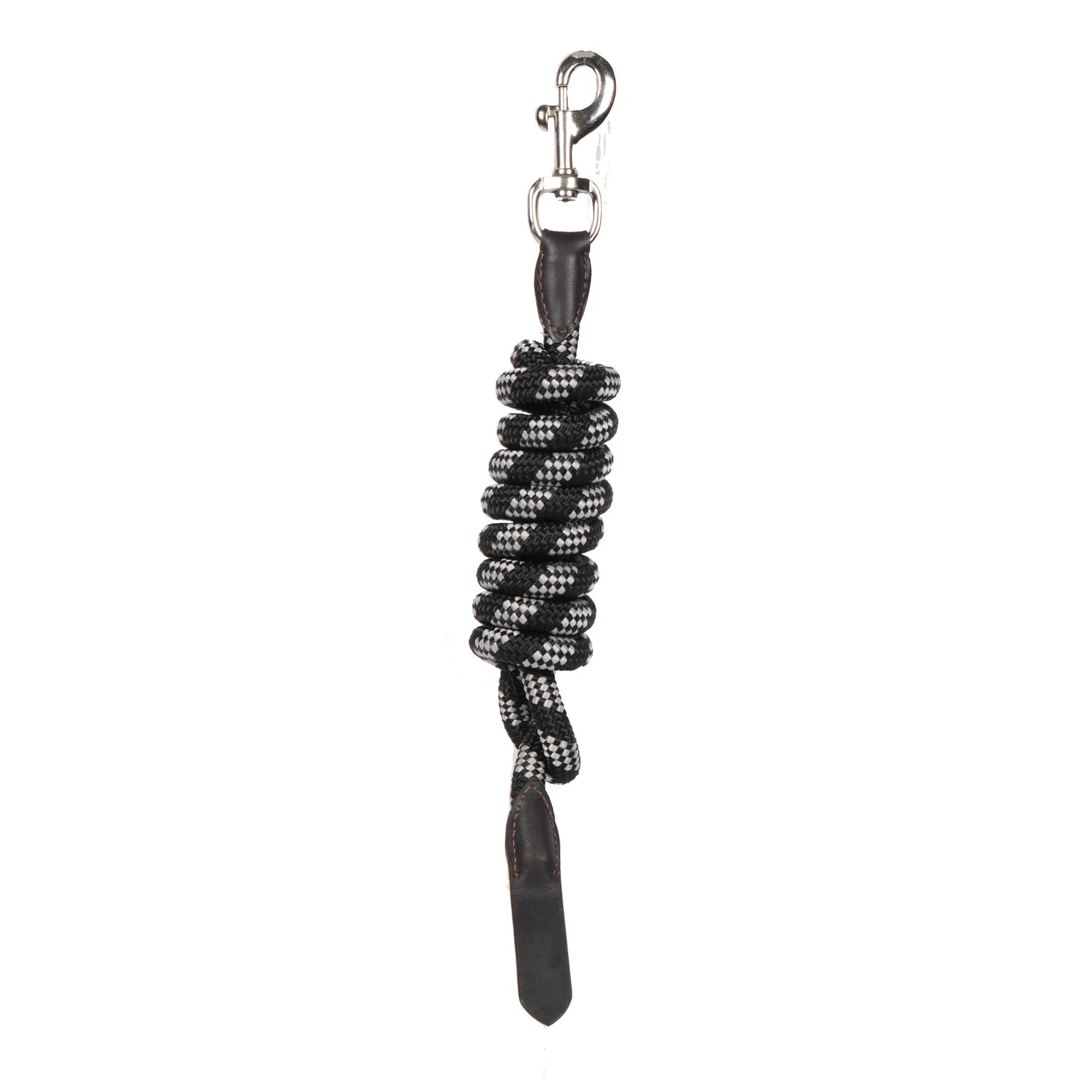 Halsterlijn passend bij het Corda halster, gemaakt van dik geweven koord, afgewerkt met leer.